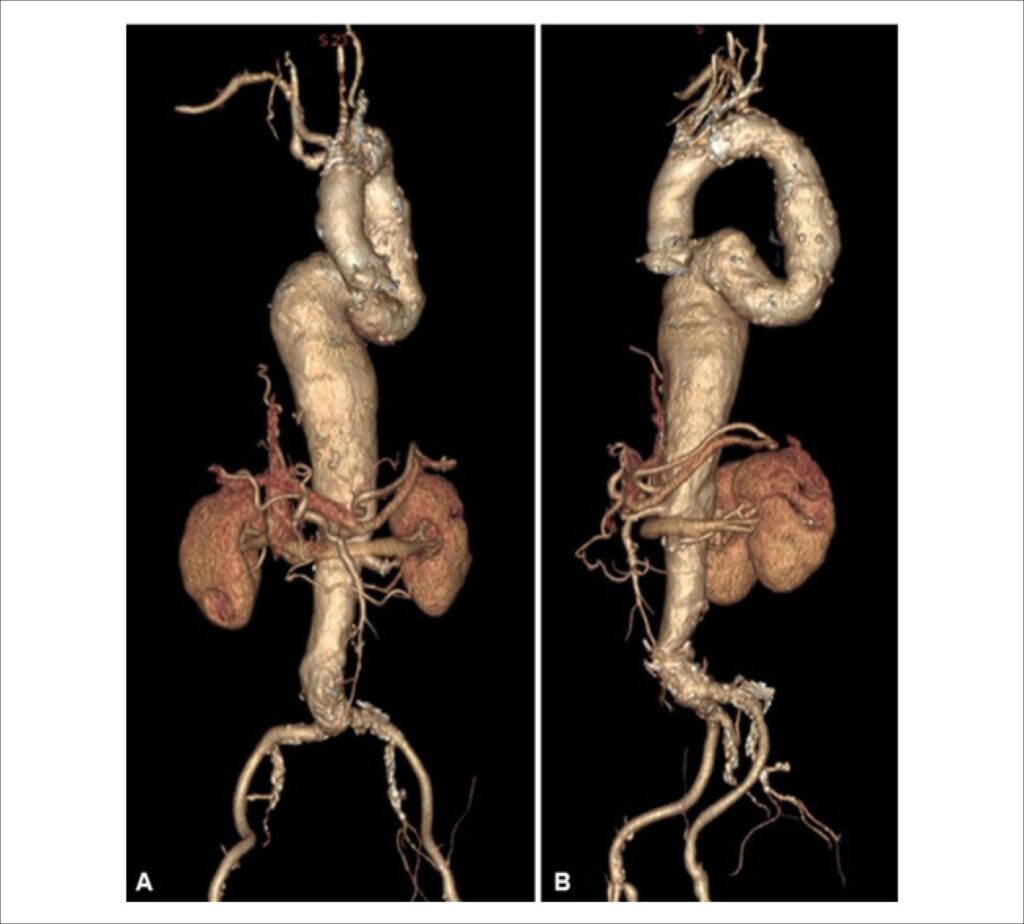 An ARSA is a rare anomaly with a 0.2% to 13.3% prevalence., It is more common among females, individuals with congenital anomalies (up to 3%), and those with Down syndrome (up to 35%). ARSA may be associated with a bicarotid trunk in 0.8% to 20% of cases, where common carotid arteries originate from the same point on the aortic arch. Thoracoabdominal Aortic Aneurysms (TAAAs) represent 10% of all aortic aneurysms. These aneurysms are potentially fatal if not treated early, as they may progress to rupture or dissection. In a São Paulo epidemiological study, the mortality rate for emergency TAAA repairs was nearly double that of elective repairs (42.10% vs. 26.78%). This difference is often attributed to the hemodynamic instability of ruptured aneurysms and the lack of timely preoperative preparation in urgent cases. Anatomical assessment is essential for treating TAAAs, whether through open surgery, endovascular surgery, or hybrid techniques. Anatomical variations in the supra-aortic trunks increase surgical complexity, regardless of the chosen technique.