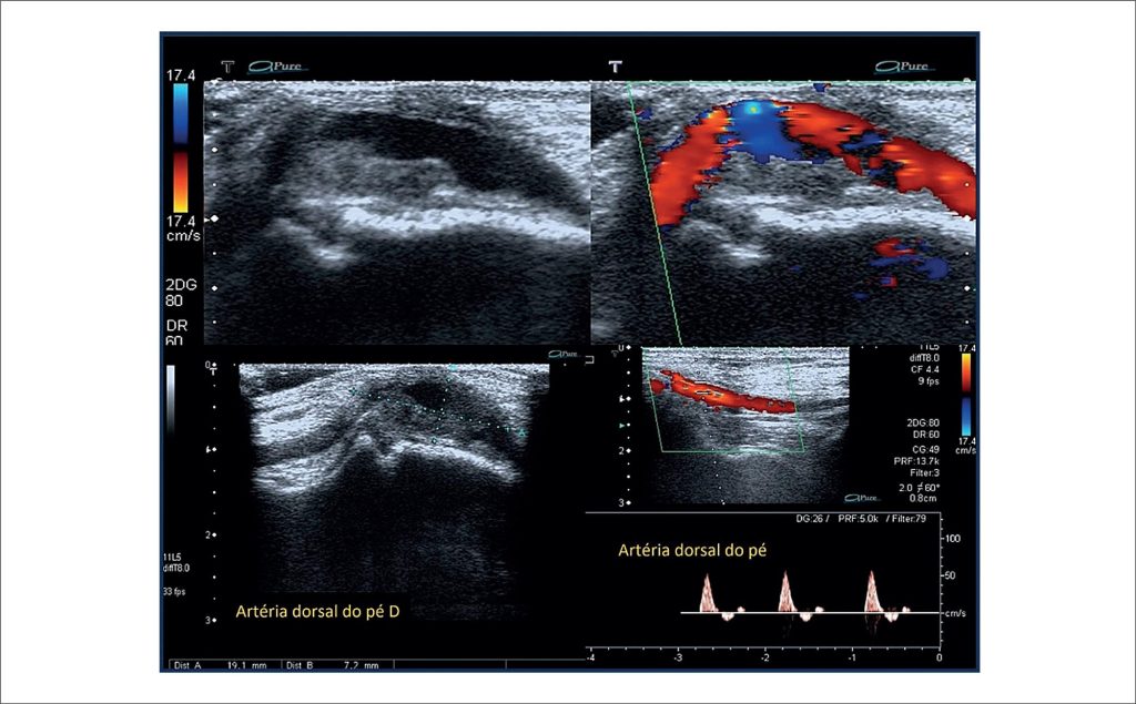 The DPAA (pedal artery) was first described in 1907. Since then, other authors have reported this rare type of aneurysm, but its clinical manifestations are still relatively unknown. With only 24 cases reported in the literature until 2017, according to Aragão et al., the DPAA aneurysm is more common among men (63%) with a mean age of 55.4%. In general, it appears as a pulsatile mass, which may lead to microembolization, hemorrhage, rupture, and nerve compression. Physical examination usually reveals a pulsatile mass that can cause pain, paresthesia, and discomfort when walking or wearing shoes, complaints similar to the case reported in our study.