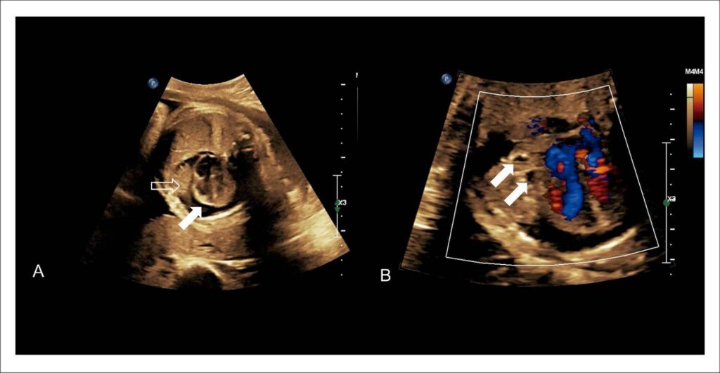 Primary cardiac tumors are rare in all age groups, with an incidence of 0.002% to 0.3% in autopsy series. During the prenatal period, cardiac tumors are highly uncommon and may be incidental findings in routine ultrasound assessment, which has become more frequent with the widespread use of imaging methods in the last decades. Fetal echocardiography is the main tool for detailed diagnosis of cardiac anatomy and function from the end of the first trimester until term., During fetal life, the most frequently found tumors are benign primary tumors, which include rhabdomyomas (the most common), as well as teratomas, fibromas, hemangiomas, and myxomas. The finding of malignant primary tumors (for example, rhabdomyosarcoma and fibrosarcoma) or metastatic tumors is exceptionally rare. In fetuses, cardiac tumors can be asymptomatic or lead to complications, such as arrhythmias, hydrops, obstruction of ventricular inflow or outflow, heart failure, and death.