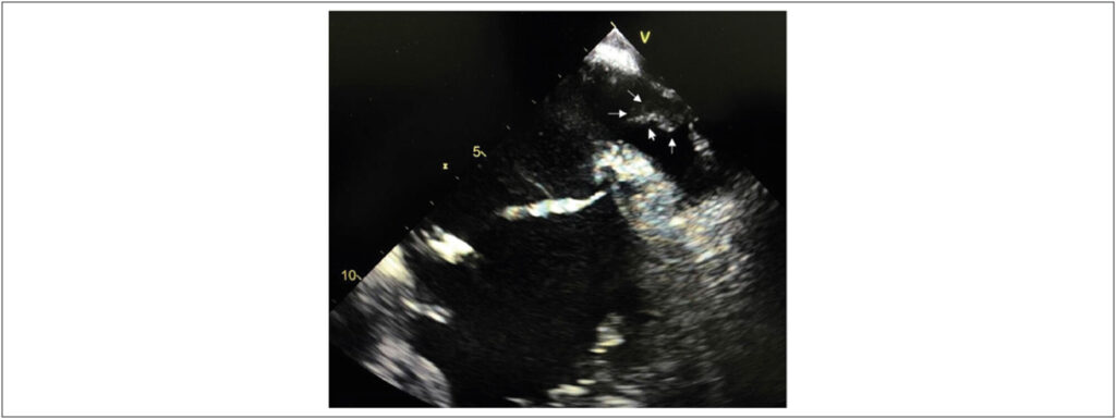 In this case, it is noteworthy that the diagnosis of pseudo-thrombus by TEE corresponded to an extracardiac metallic structure (stent) artefact closely related to the LAA but only identified on the cardiac CT-angio and relevant in the patient’s treatment.