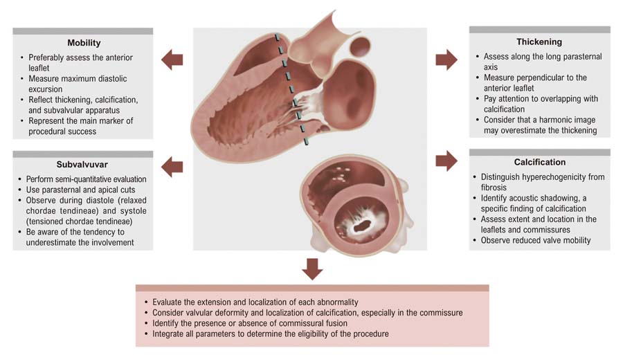 Mitral stenosis (MS) is the main clinical expression of chronic rheumatic heart disease. In symptomatic patients with severe MS and favorable anatomy, percutaneous mitral balloon valvuloplasty (PMBV) is the first-line therapeutic strategy. For the proper selection of candidates, the Wilkins-Block echocardiographic score was developed to characterize mitral valve morphology and predict eligibility for the procedure. This score includes four structural domains: leaflet mobility, valve thickening, degree of calcification, and subvalvular apparatus involvement, grading each parameter from 1 to 4 points, resulting in an overall range of 4 to 16 points, in increasing order of anatomical severity. The Wilkins score has become a widely validated tool, showing a consistent correlation with the immediate and long-term outcomes of PMBV. Among the limitations of the score, the absence of commissural anatomy assessment stands out, a variable recognized as a relevant prognostic determinant due to its strong association with the occurrence of post-procedure mitral regurgitation, considered the most frequent and clinically significant complication of PMBV. With the accumulation of clinical and technical experience, the indications for PMBV have been progressively extended to include patients with less favorable anatomical profiles. In these contexts, selection must be particularly rigorous, incorporating not only morphological criteria derived from echocardiographic evaluation, but also clinical aspects, in order to ensure satisfactory results and minimize the risk of complications.