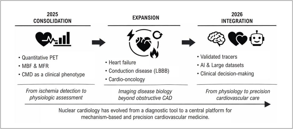 Over the past decade, nuclear cardiology has undergone a profound transformation. What was once primarily a diagnostic tool focused on ischemia detection has evolved into a comprehensive platform for physiological understanding, risk stratification, and precision cardiovascular care.,- In this context, the field has shifted from simply identifying disease to elucidating its underlying mechanisms, echoing Marie Curie’s insight that “nothing in life is to be feared, it is only to be understood.”