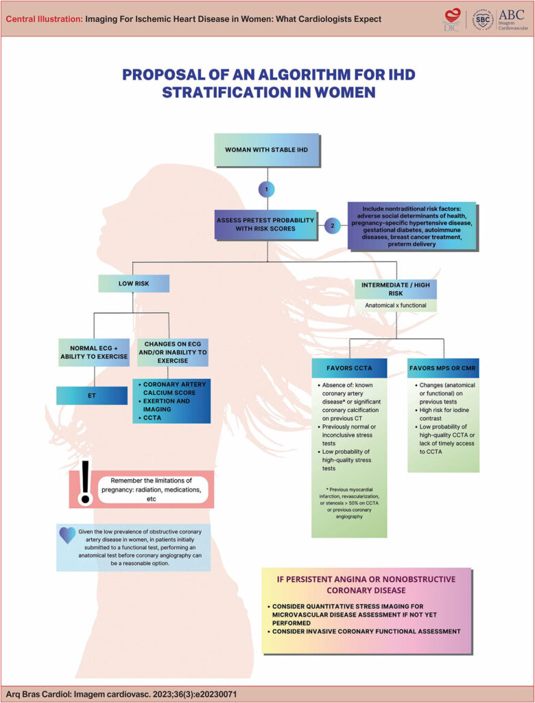 Complementary tests for microcirculation assessment should be used in cases of proven ischemia in the absence of obstructive coronary artery disease, which is known to be more frequent in women.