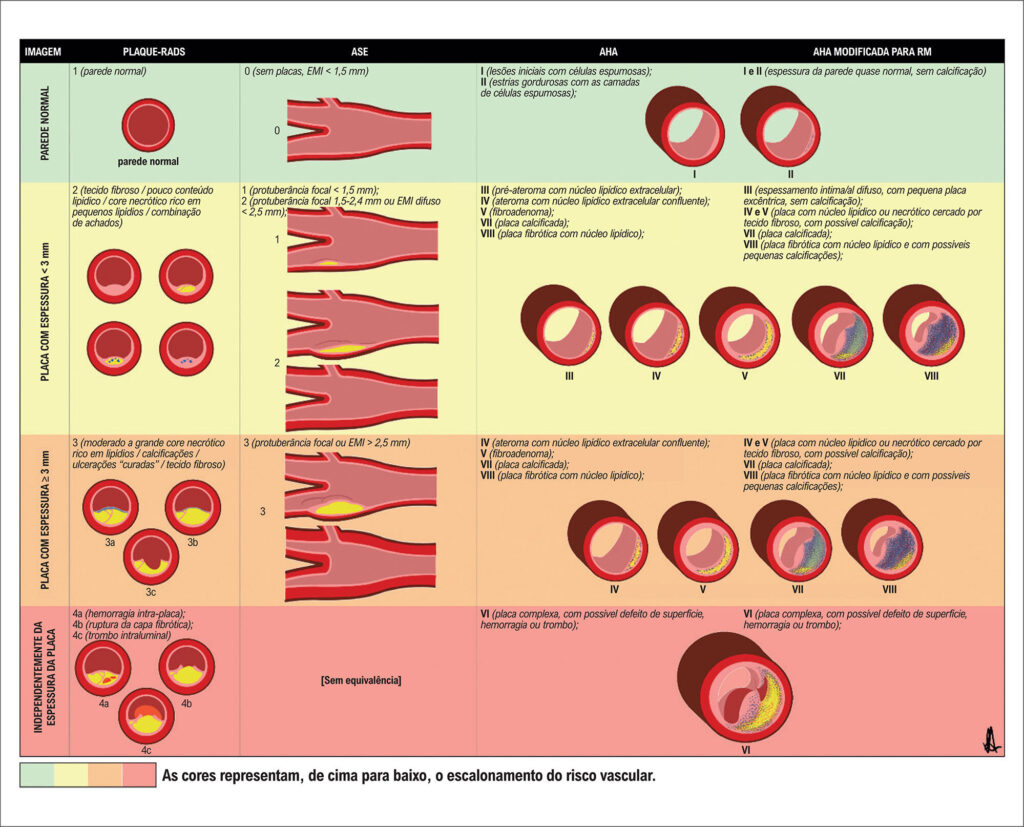 Muitos artigos na área da ecografia vascular foram publicados em 2024, mas certamente o mais comentado no Brasil ao longo desse ano foi o artigo Carotid Plaque-RADS – A Novel Stroke Risk Classification System, publicado por Saba et al. na JACC Cardiovascular Imaging. Foram reunidos 51 especialistas, pertencentes a 10 países, de diferentes modalidades de imagem vascular. Essa nova proposta de categorização da placa carotídea chamou a atenção de médicos de diversas especialidades, como cardiologistas, neurologistas, radiologistas, ultrassonografistas e cirurgiões vasculares. Discutiremos nesta seção os principais aspectos dessa proposta, comparando-a com outras classificações já existentes.
