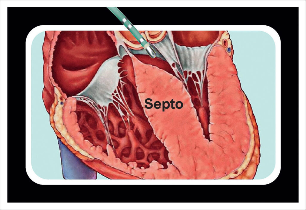 A cardiomiopatia hipertrófica obstrutiva (CMHO) é uma patologia de origem genética caracterizada por acentuada hipertrofia miocárdica, além de fibrose de extensão variável. A obstrução da via de saída do ventrículo esquerdo (OVSVE) é uma condição anatômica de comportamento dinâmico, podendo ocasionar sintomas como limitação ao esforço físico e redução da classe funcional, além de ser associada a casos de morte súbita.